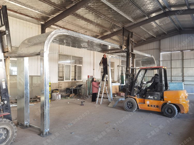 不銹鋼材質(zhì)的遮蔽物更容易清洗,而鍍鋅鋼管材質(zhì)的遮蔽物更美觀,顏色更多樣。吊頂一般采用304不銹鋼板或鍍鋅板(厚度1.2mm或1.5mm),也可采用鋁塑板、陽光板、耐久板(厚度4.2-4.5mm)、鋼化玻璃、夾膠玻璃等。